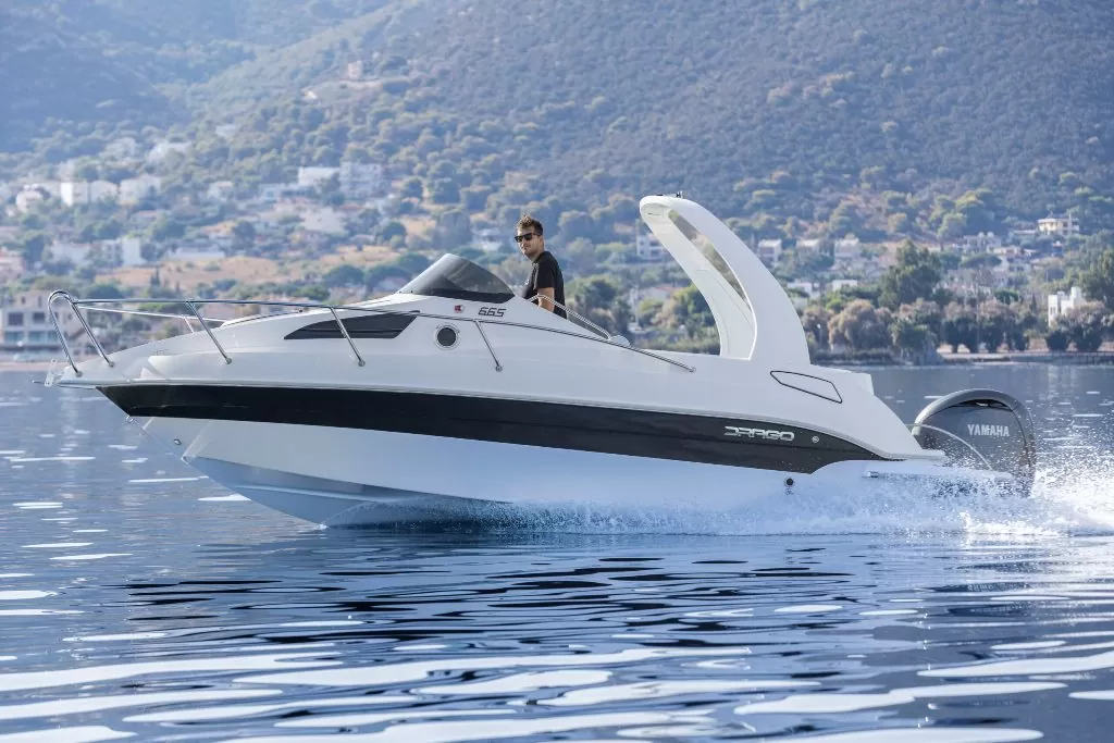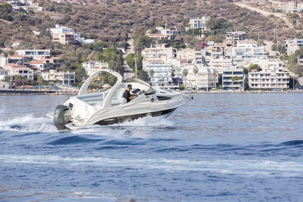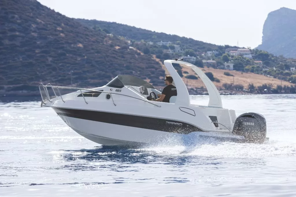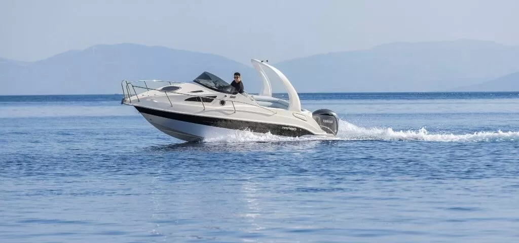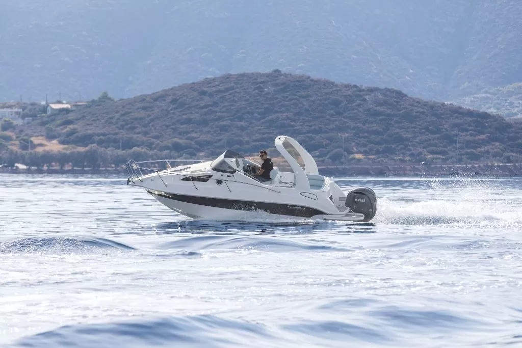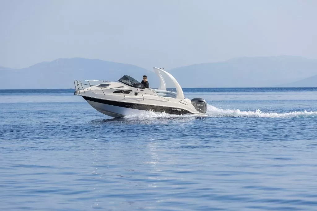 A tágas kabin megőrizte jellegzetes kényelmét, most egy harmadik felnőtt számára pótággyal bővítve. A továbbfejlesztett fülke egy hatékony wet bárral és egy fényűző napozóterasszal rendelkezik a társvezető oldalán. A figyelemre méltó jellemzők közé tartozik a funkcionális konzol félig dupla, rendkívül kényelmes vezetőüléssel, valamint az opcionális hátsó platformok a sokoldalúság növelése érdekében. Ez a sportcsónak tökéletes társ a felejthetetlen vízi emlékek megteremtéséhez.